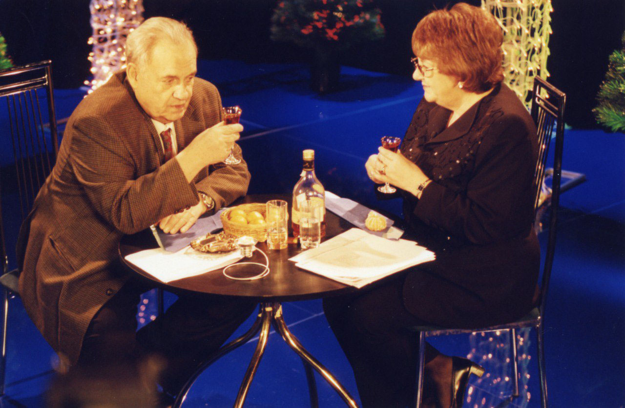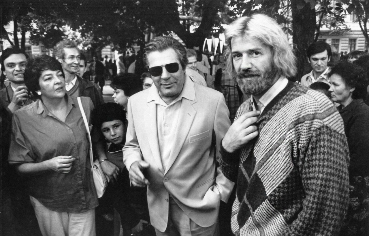 Ирена времен программы «Кинопанорама» с Марчелло Мастроянни и Александром Абдуловым, 1988 г.