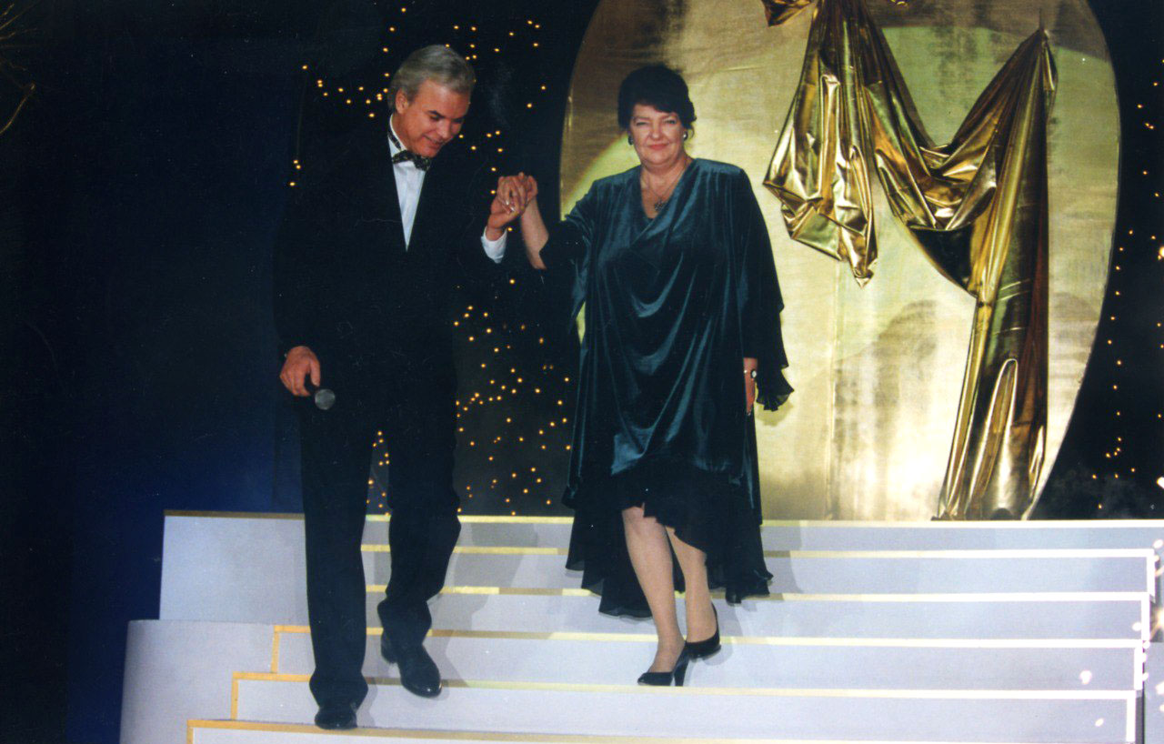 Женщина-вамп: Ирена Лесневская получает премию ТЭФИ — главную телевизионную награду времен российской свободы (Слева — Владимир Молчанов).