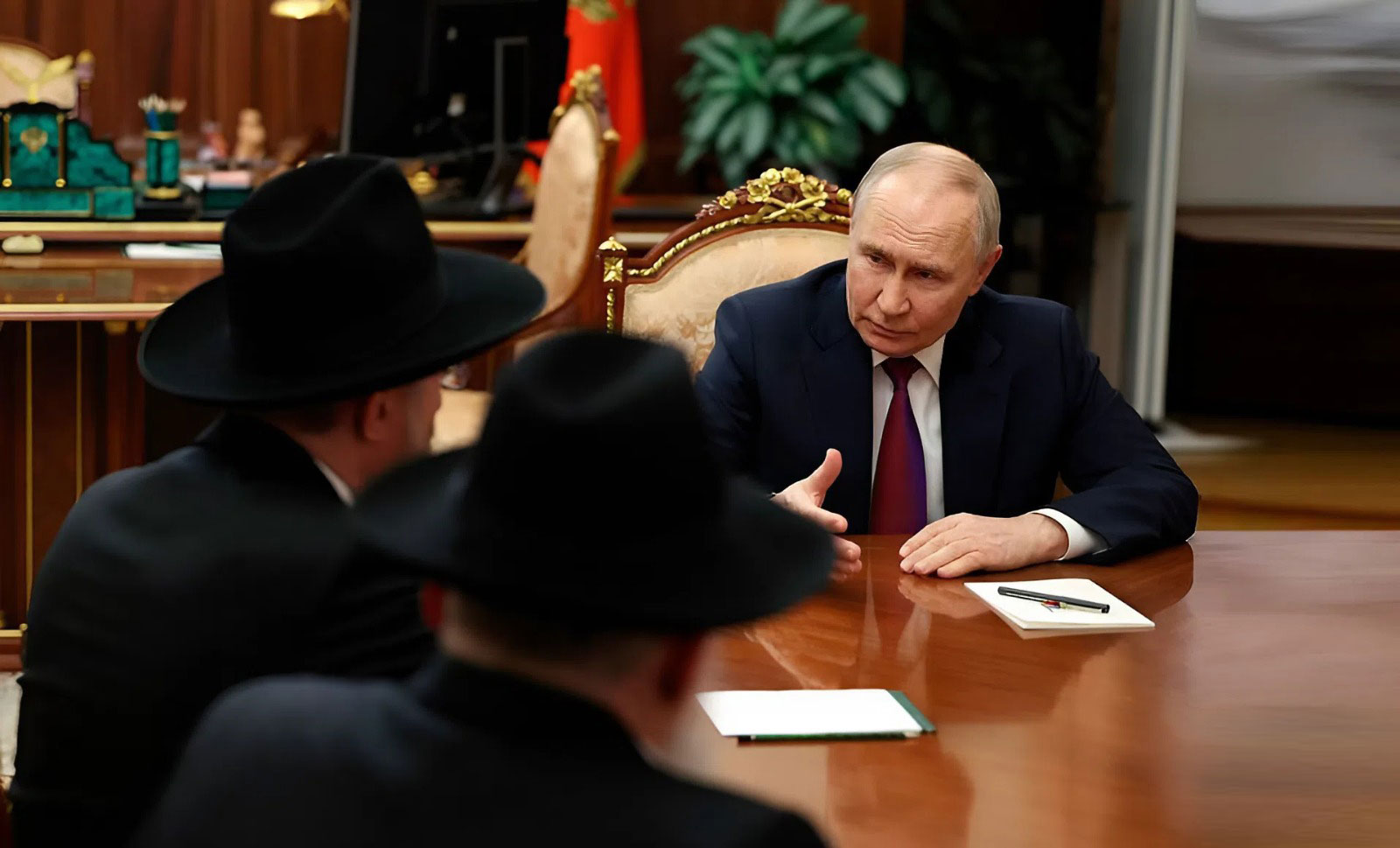 Встреча В. Путина с главным раввином России Берлом Лазаром (на фото в центре) и президентом Федерации еврейских общин России Александром Бородой (на фото слева). 28 января 2026 г. Фото: kremlin.ru